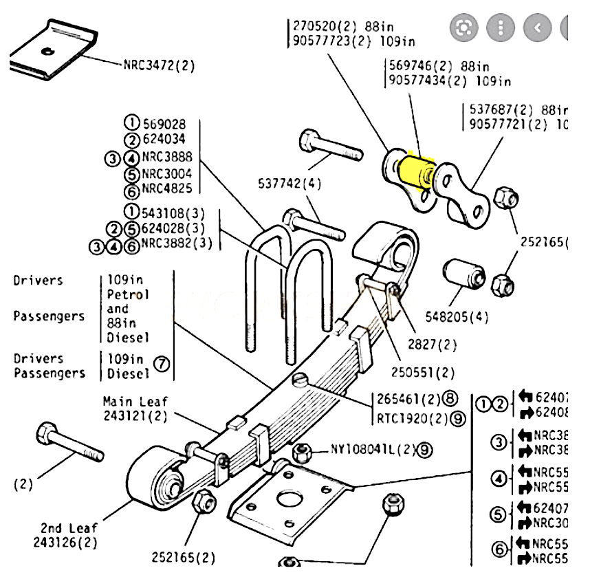 • Land Rover Series 2A (11A) LWB 109 inch, late vehicles only, from VIN / chassis number suffix H onwards, built to 1971 runout.