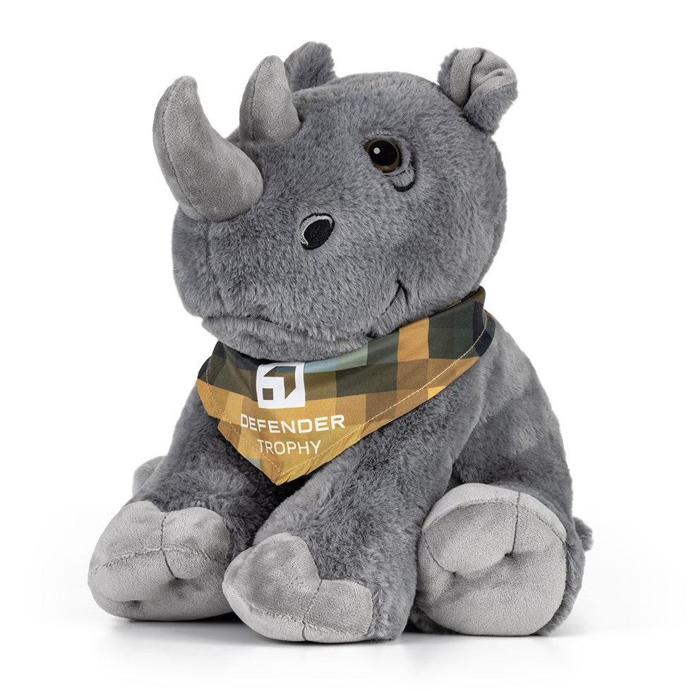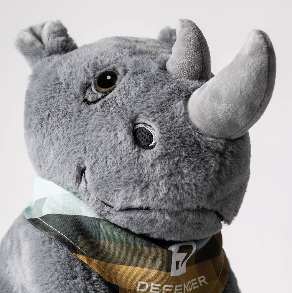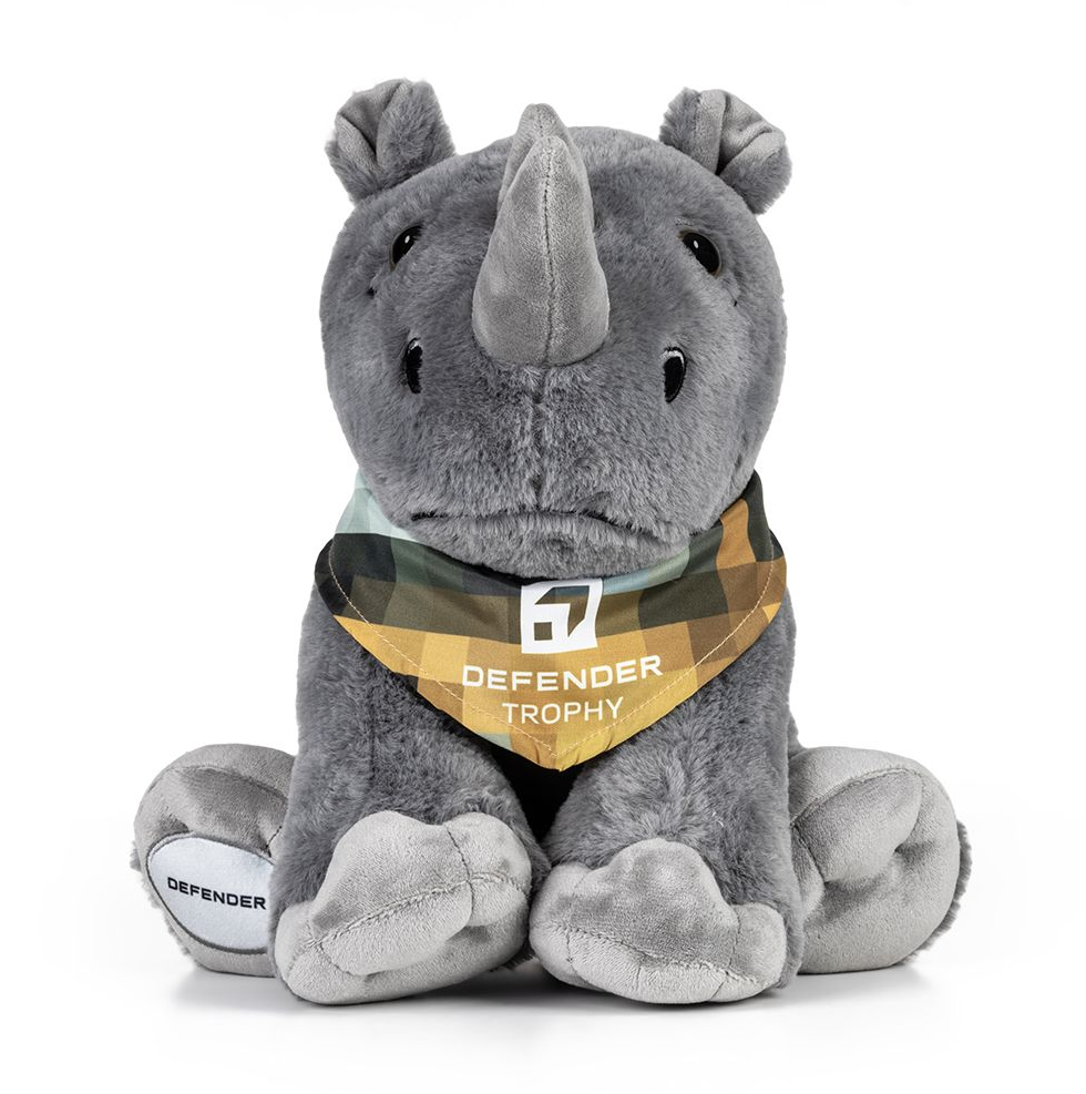 Bring home a symbol of adventure and conservation. This soft plush rhino, part of the Defender Trophy Collection, is inspired by the spirit of exploration and the commitment to protect wildlife.