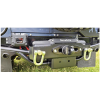 The A12000 winch (TF3301) is ideally suited to this winch mount as the cables are the perfect length to reposition the solenoid pack on the rear cross member using the existing mounting bracket. The winch mount includes jacking points and has the provision for 2 swivel recovery eyes (TFSRP).