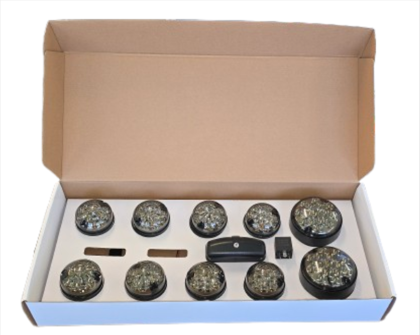 Clear front sidelight x 2 Amber front indicator x 2 Amber rear indicator x 2 Red stop/tail x 2 Red rear Fog x1 Clear rear Reverse x1 Rear Number Plate Lamp x1 12v LED flasher relay x1 73MM SMOKED LED LIGHT KIT WITH 95mm FOG AND REVERSE