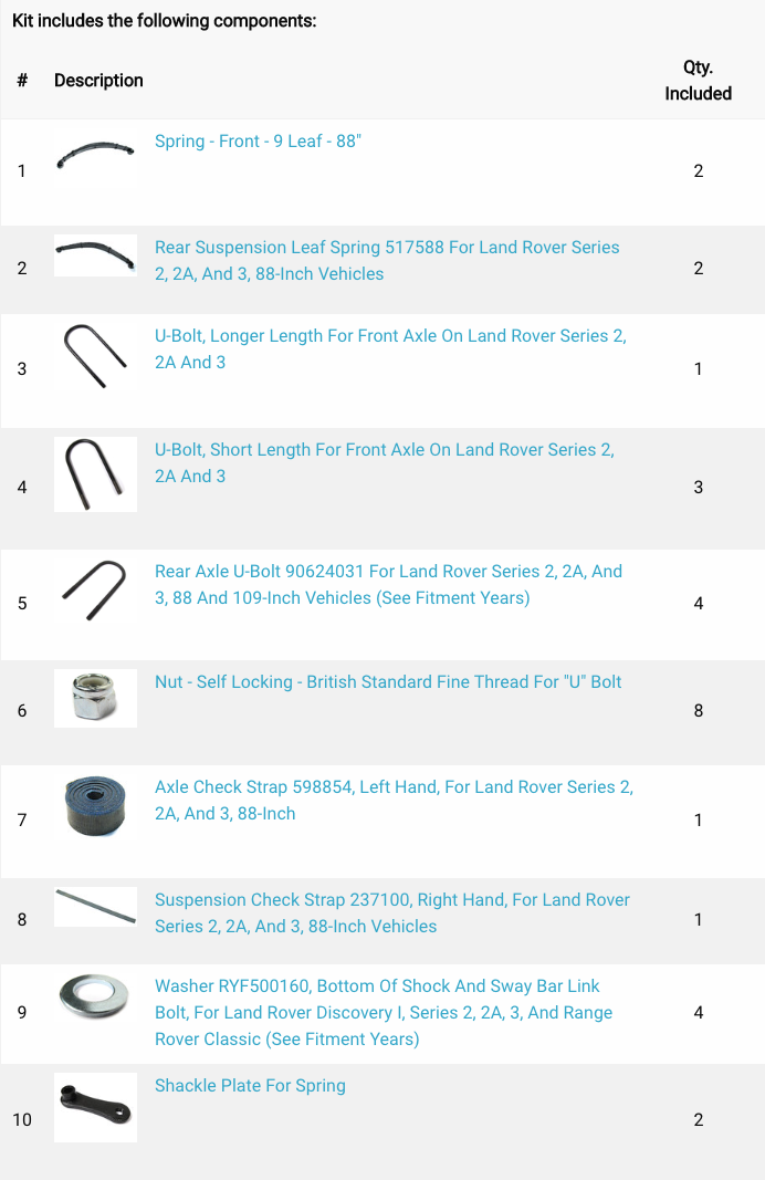 • Land Rover Series 2/3 Full Leafspring/Suspension Kit LWB
