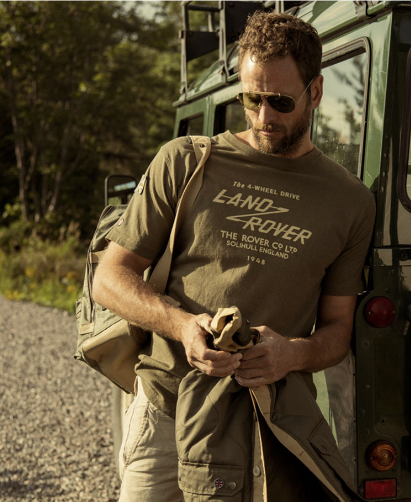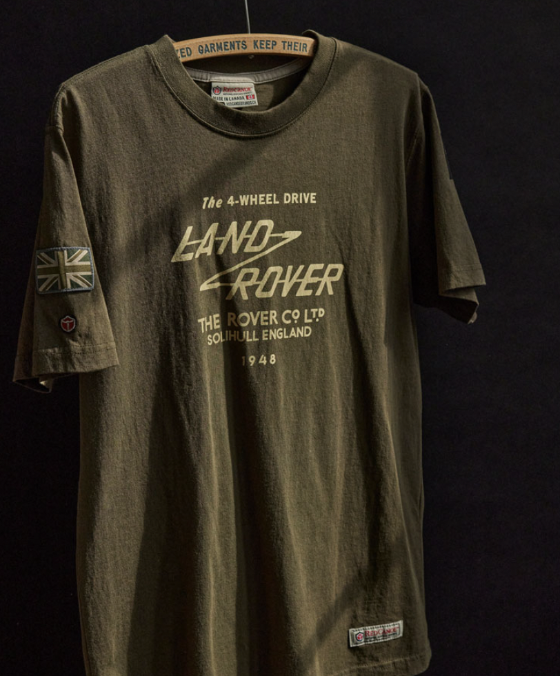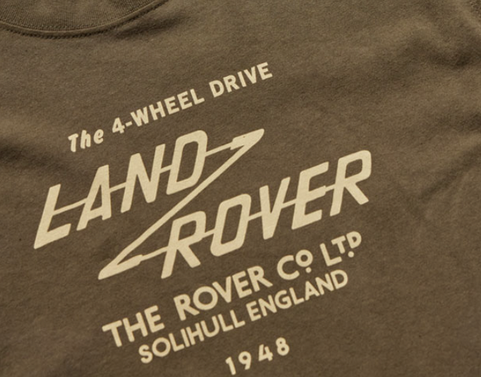 Our small batch ‘Made in Canada’ shirts are built to last like the iconic Land Rovers we celebrate. This Olive green model takes inspiration from vintage advertising artwork and the original Land Rover font. The right shoulder has a stitched on woven flag patch and the left a print of the HUE 166 original plate.