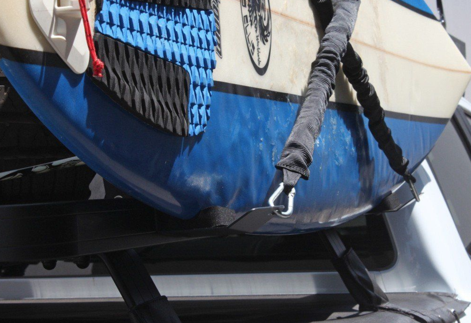 • 2 supplied Front Runner Stratchits hold the Surfboard snug against padded side rests. The Stratchit straps clever cinching system provide easy-on and easy-off secure transport every time.